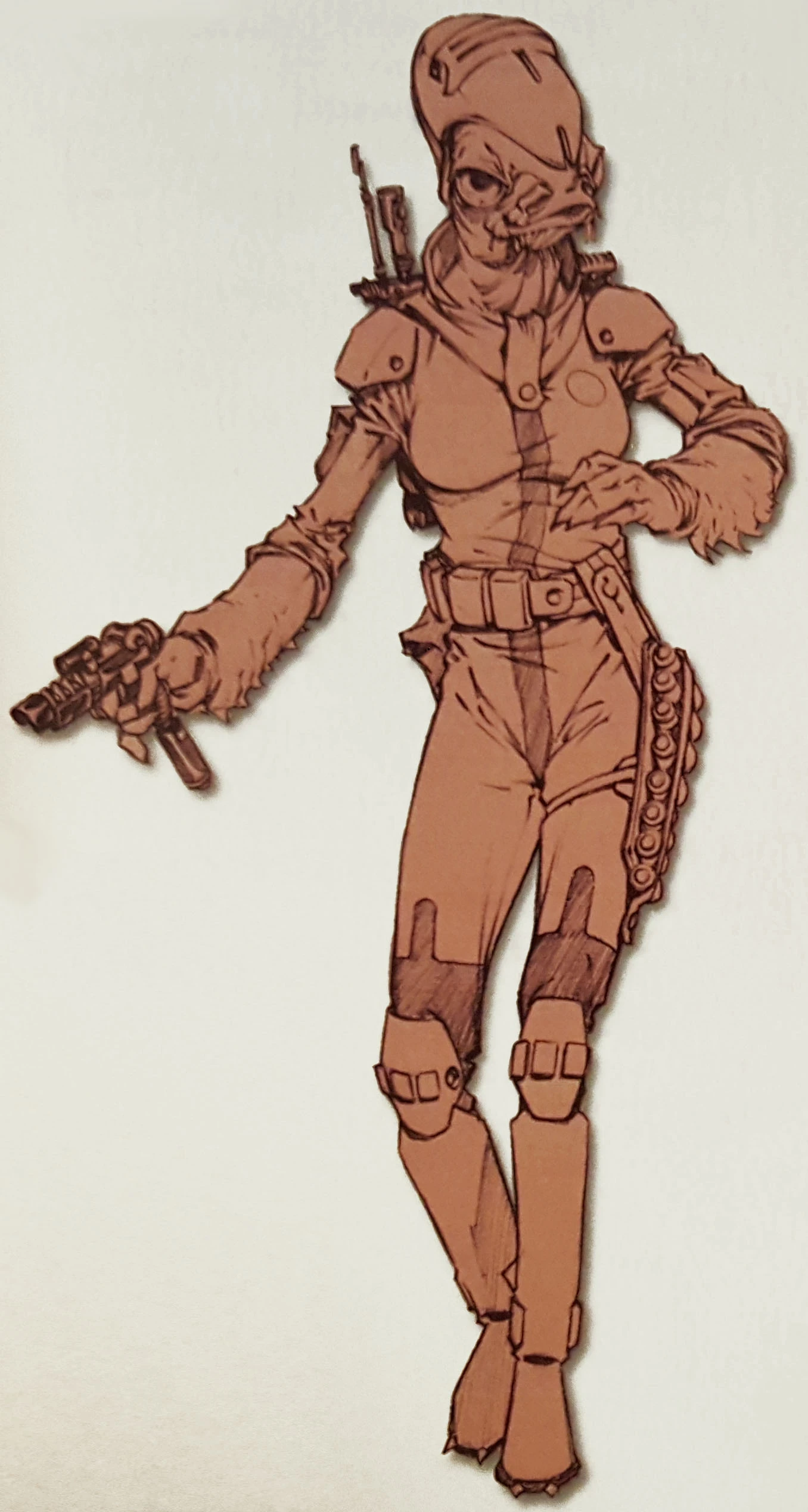 Rodian females also possessed breasts with functional mammary glands. Off-world females, however, would wear loose clothing in an attempt to disguise their gender. Some females did flaunt their physique if they knew it would work to their advantage.[28]