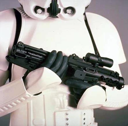 The BlasTech E-11 blaster rifle, also referred to as the E-11 BlasTech Standard Imperial Sidearm or the Stormtrooper Armament Blaster Rifle (BlasTech E-11)[2], was a blaster rifle used during the time of the Galactic Republic, and manufactured by BlasTech Industries during the Galactic Civil War. It was the standard blaster rifle of the Imperial stormtroopers. A powerful, light and compact weapon, the E-11 was used widely through the galaxy.