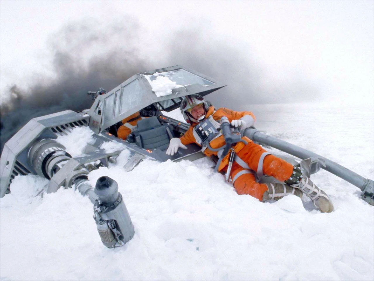 Luke Skywalker boards his X-wing fighter prior to the Battle of Yavin.