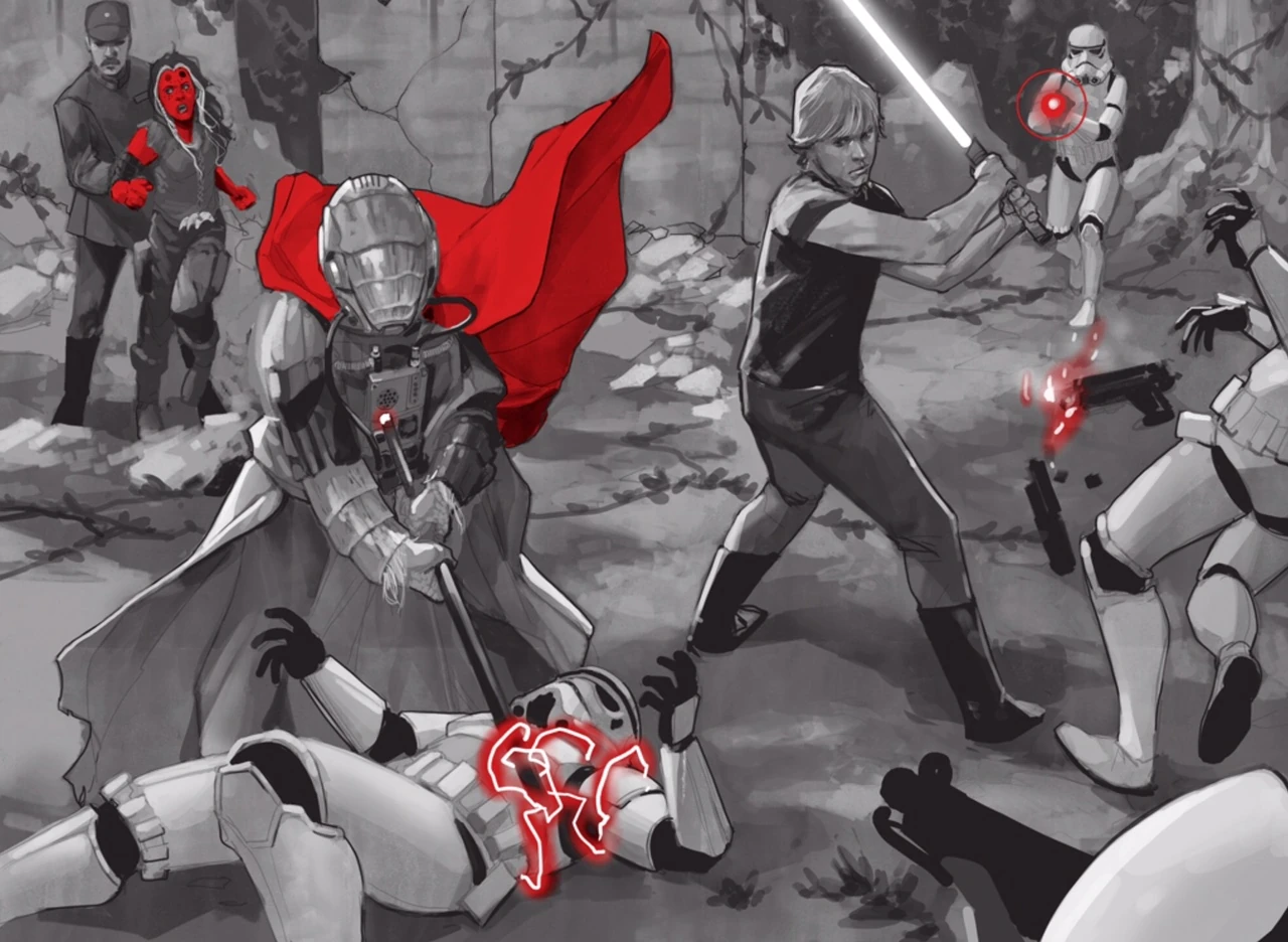 Luke Skywalker is dispatched by Darth Vader following a brief confrontation on Cymoon 1.