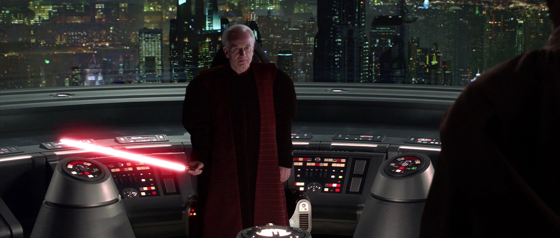 Chancellor Palpatine requests Anakin's presence, and they meet in the Chancellor's office. The Senate has granted the Chancellor further emergency powers, giving him direct control of the Jedi Council. Palpatine confides in Anakin his fear, distrust, and contempt of the Masters. He appoints Anakin to be his personal representative on the Council.
