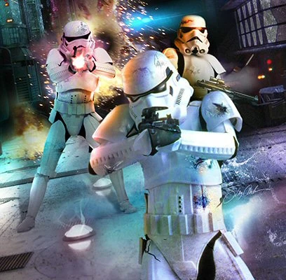 Stormtroopers fighting for the Sith-controlled Galactic Empire.