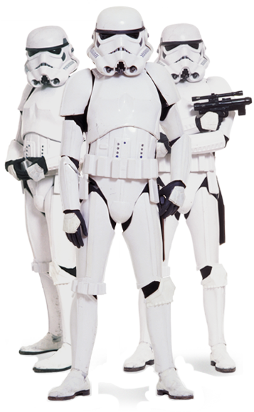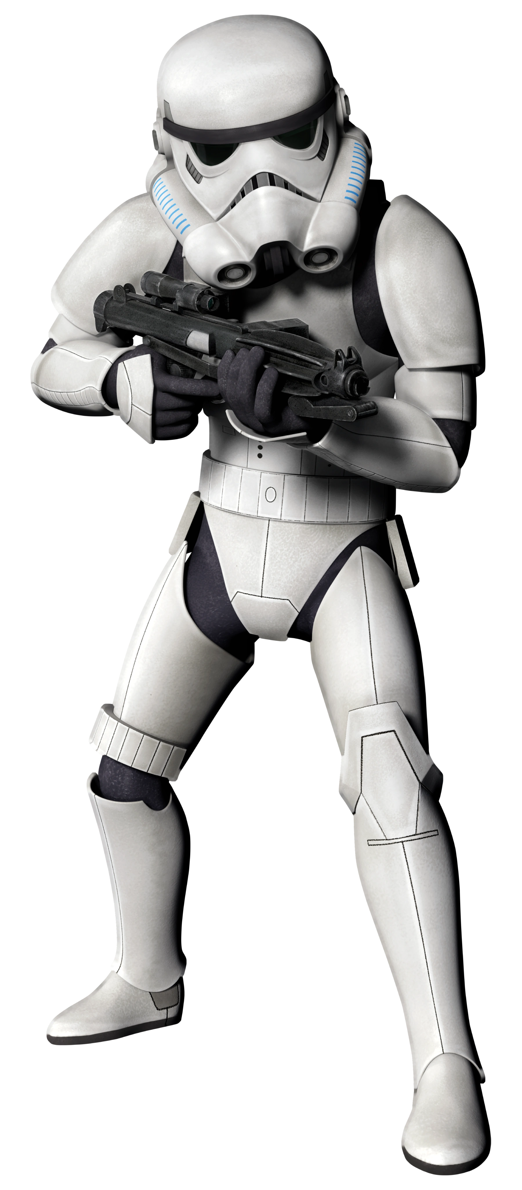 The stormtroopers represented the ultimate evolution of the clone troopers, the soldiers who fought on the Galactic Republic's side against the Confederacy of Independent Systems in a prolonged and protracted conflict that came to be known as the Clone Wars.[1] Following the execution of the Separatist Council, Sheev Palpatine, then Supreme Chancellor of the Republic, transformed the democratic government into a tyrannical regime of his own, which he dubbed the First Galactic Empire[5] With the development of the new Imperial war machine,[6] the clone trooper armor was upgraded.[1] Additionally, the new Emperor ordered the extermination of the Jedi Order, the members of which had served as officers in the Grand Army of the Republic during the Clone Wars.[5] Within the new regime, the clone troopers—now known as stormtroopers—were placed under the guidance of Imperial officers and governors instead of Clone commanders or officers.[1] Following the transition, stormtroopers were used to bring any remaining Separatist worlds into line.[7] As the clones' accelerated aging process began causing their physical skills and abilities to deteriorate, they were replaced by non-clone volunteers and conscripts.[8] Nonetheless, several clone troopers would remain in service to the Galactic Empire, with some serving as training instructors in the Imperial Academy,[9] while other members remained in active duty such as Sergeant Crest and TX-828, who was still active following the Battle of Yavin.[10]
