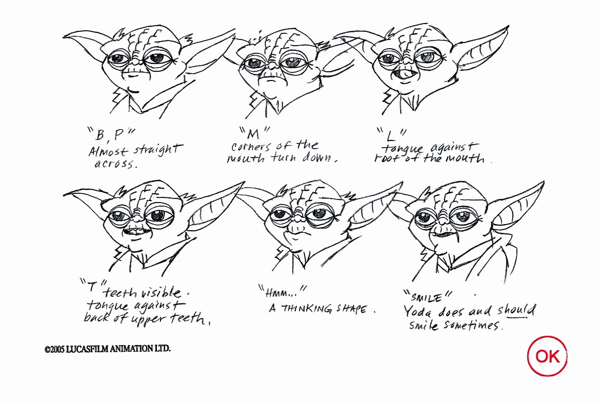 Character studies of Yoda created for The Clone Wars episode "Ambush".